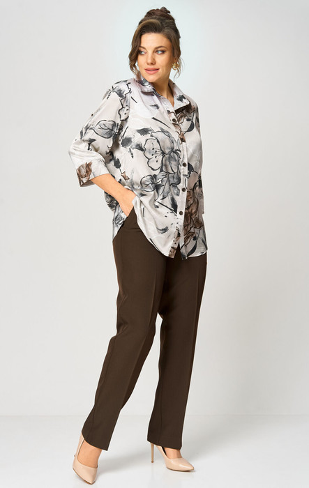 Этот комплект создан для того, чтобы вы забыли о вопросе «Что надеть?». Мы объединили две вещи, которые составляют основу стильного и практичного гардероба. Верх: блуза прямого кроя из нежного текстиля. Рукава 3/4 с манжетами и отложной воротник дарят образу лёгкость и утонченность. Центральная застежка на пуговицы и боковые разрезы добавляют практичности. Длина по спинке 74 см, длина рукава 45. Низ: классические прямые брюки с заутюженными стрелками, которые визуально вытягивают силуэт. Скрытая резинка по бокам гарантирует невероятный комфорт, сохраняя безупречный вид спереди. Длина брюк от талии по боковому шву 103 см.