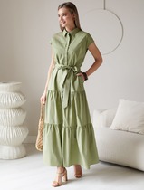 Платье А-силуэта с поясом из легкого хлопкового поплина