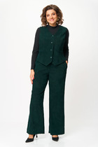 Костюм женский трикотажный, двухпредметный. Состоит из кардигана и юбки. Кардиган на подкладке с функциональными карманами по переду, застежка молния, по низу изделия кулиска со шнурком, капюшон украшен боа. Юбка полуприлегающего силуэта на трикотажной подкладке, пояс на резинке, в боковом шве разрез.