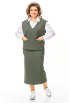 Костюм женский 2-УХ предметный. Платье и блузка. Платье длинное на брителях. Блузка с центральнобортовой застежкой на петли и пуговици, рукав втачной с манжетом. Перед украшен цветами.