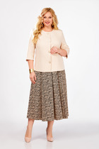 Элегантный костюм, состоящий из стильной жилетки и классической юбки. Жилетка на запах со спущенным плечом и шалевым воротником придаёт образу утончённость и современность. Отложные манжеты добавляют изысканности, а пояс из основной ткани на двух полукольцах позволяет подчеркнуть талию. Юбка с шлицей (разрез) по заднему полотнищу и молнией по центральному шву обеспечивает комфорт и свободу движений. В комплект входит брошь, которая станет прекрасным акцентом в вашем образе. Подходит для офисных встреч и вечерних мероприятий, сочетая в себе стиль и практичность.