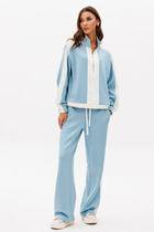 Комплект брючный. Кофта прямого силуэта, линия плеча спущена,рукав втачной одношовный. Горловина обработана бейкой. По низу изделия и рукава манжеты. Центральная часть переда с отделочной деталью( с вышивкой). Брюки прямые, в боковых швах обработаны карманы, верхний срез обработан поясом с резинкой и шнурком. Жилетка женская утепленная с центральной застежкой на "молнию". Спинка со стяжкой. Перед с отрезными бочками и боковыми карманами "с листочкой". Воротник стойка с кулисой и шнуром из декорированной тесьмы. Низ жилетки округлой формы спереди короче, а спинка длиннее . Правый карман украшен нашивкой.