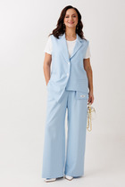 АКЦИЯ "В отпуск!" -15% по 27.04Прямые брюки с поясом на резинке из фактурного тр