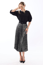 Комплект женский, состоящий из блузона и брюк. Блузон прямого силуэта со спущенной линией плеча. Рукав одношовный, длинный, заканчивающийся открытым срезом. Вырез горловины V-образный, с притачной планкой и декоративным элементом из основной ткани. Перед с асимметричными подрезами и декоративными элементами. Низ блузона выполнен открытым срезом. Брюки свободного силуэта, заужены к низу. Пояс притачной, с резинкой. Перед брюк с боковыми карманами. Брюки с фигурными подрезами. Подрезы и низ брюк выполненными швами с открытыми срезами.