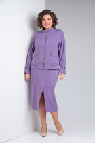 Костюм женский выполнен из денима (джинсы) состоит из джинсовой рубашки и брюк. Рубашка асимметричного кроя с декоративным подрезом и кокеткой, на полочках расположены потайные карманы с клапаном и рельефы.горловина- плосколежащий отложной воротник. Рукав вточной приспущенный, низ рукава обработан манжетой с застежкой петля- пуговица. Спинка изделия разрезная с рельефами и с декоративным асимметричным подрезом и бахромой. Низ рубашки обработан в открытый срез. застежка- петля- пуговица на планке. Брюки прямого кроя, завышенной посадки на притачном поясе. По переду Джинс -ассиметричная декоративная вставка с отделкой из бахромы, в боковых швах расположены карманы, на задней части брюк расположены накладные карманы. Низ брюк с широкой подгибкой обработан в открытый край.
