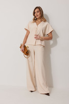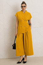 Свободный джемпер упрямлённого силуэта, втачного покроя с регулирующей кулисой по низу. Полочка с боковым вертикальным рельефом. Спинка с вертикальным рельефом, средним швом и застёжкой на отелочную молнию. Рукав с цельнокроеной манжетой. Юбка макси, на притачном эластичном поясе, с наклонными боковыми карманами и эффектным разрезом сбоку.