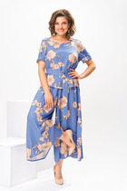 Костюм женский блузка + юбка прямого силуэта, выполнено из льна двух цветов.
