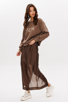 Юбка на резинке и подкладке, слегка заужена к низу, со шлицей сзади -это обеспечивает комфорт при носке.