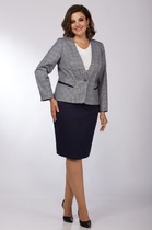 Костюм состоит из жакета и брюк из хлопковой ткани. Жакет полуприлегающего силуэта с воротником пиджачного типа. Застежка однобортная на две пуговицы. Перед с талиевой вытачкой, рельефом и декоративным клапаном. Спинка с рельефами из проймы и средним швом. Рукав втачной двухшовный. Брюки расширеные книзу на притачном поясе. По поясу настрочены шлевки. По передним и задним частям брюк вытачки. На задних частях брюк настрочены карманы. Карманы, вытачки, пояс, низ брюк отделаны отделочной строчкой. Длина жакета - 68см, длина рукава жакета - 60 см, длина брюк с учетом пояса -107 см