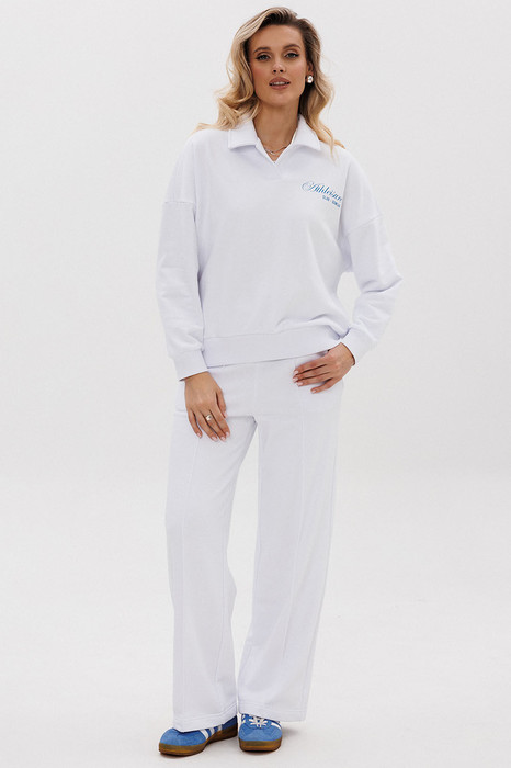 Для очаровательного образа не хватает воротничка! Воротник — маленькая деталь, которая «смягчает» и делает нежным весь аутфит. Брюки со стрелками добавят образу строгости и деловитости, что позволит носить костюм как на прогулки, так и в офис.