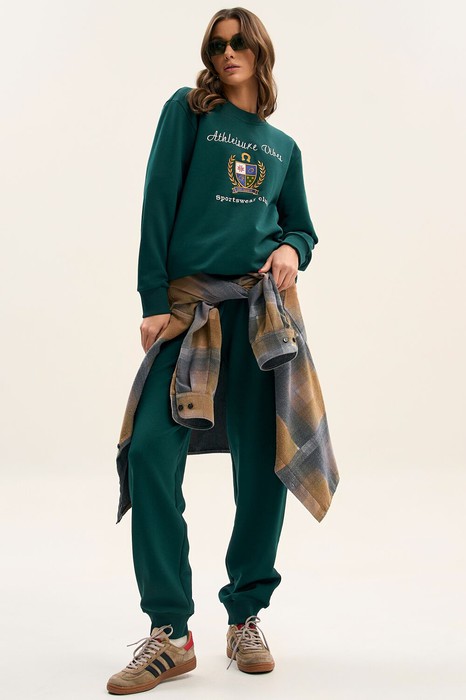 Женский спортивный костюм со свитшотом - отлично подойдет для офиса, прогулок, активного времяпровождения, а также корпоративных мероприятий и тимбилдинга.