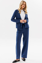 Костюм Gowear из футера в стиле smart casual поможет создать в меру строгий и одновременно расслабленный образ. Костюм состоит из жакета и юбки из эластичной ткани кошкорсе. Жакет прямого силуэт, с v-образным вырезом горловины, без застежки, с отдельным поясом. На левом переде вышивка-логотип в цвет ткани. Рукав свободный, со складками, присобран на манжету. Жакет без подкладки. Юбка прямая, облегающая фигуру с разрезом на спинке. Пояс цельнокроенный с резинкой внутри.