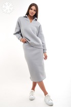 Костюм Gowear из футера в стиле smart casual поможет создать в меру строгий и одновременно расслабленный образ. Костюм состоит из жакета и юбки из эластичной ткани кошкорсе. Жакет прямого силуэта с воротником и лацканами, имеет удобные карманы и застежку на 2 пуговицы. На левом лацкане вышивка-логотип в контрастном цвете. Низ и борта имеют открытые края (эффект необработанного шва), укреплены дополнительной строчкой. Жакет без подкладки. Юбка прямая, облегающая фигуру с разрезом на спинке. Пояс цельнокроенный с резинкой внутри.