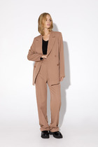 Брюки с отрезным поясом на один брючный крючок и потайную пуговицу, застежку-гульфик. Передние половинки с карманами, наклонными к боковому шву и бочком-подзором. Задние половинки с вытачками и прорезными карманами с листочкой. Брюки со стрелками и настрочными шлевками..