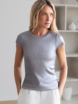 Футболка из хлопка с эластаном в рубчик с матовым металлическим покрытием