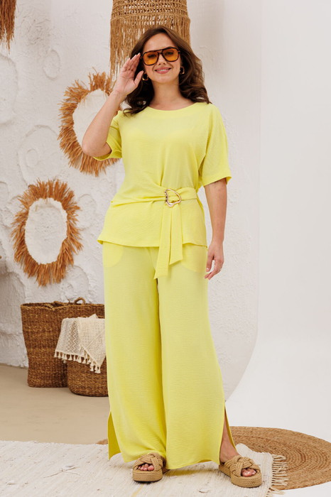 Костюм свободного силуэта, состоящий из блузы и брюк.