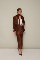 Женский костюм полуприлегающего силуэта, состоящий из рубашки и брюк, выполнен из мягкой костюмной ткани средней плотности. Рукава рубашки со спущенной линией  плеча, внутренней патой и манжетой, что позволяет регулировать высоту рукава и представляет собой стильную деталь с изысканным акцентом; воротник рубашечный; по переду накладные клапаны - обманки. Застегивается на петли и пуговицы. Классические  брюки прямого силуэта с  функциональными карманами в боковых швах, пояс притачной с эластичной тесьмой по спинке  для лучшего прилегания; застежка на молнию, петлю и пуговицу. В комплекте  съёмный пояс - резинка из основной ткани с пряжкой. Костюм полностью соотвествует заявленному размеру. Пожалуйста, пользуйтесь таблицей замеров готового изделия.
