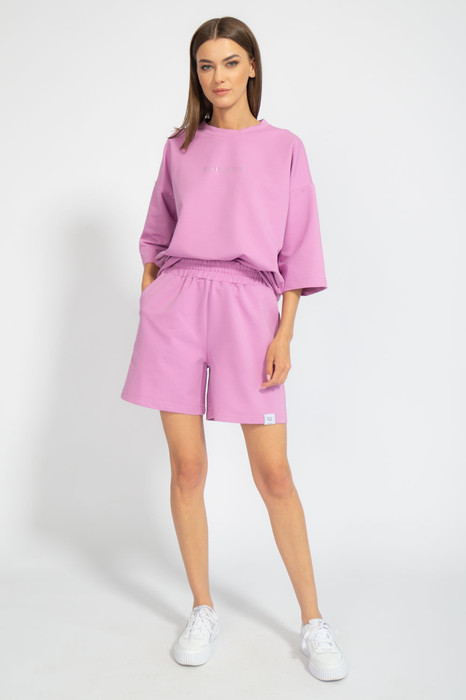 Костюм оверсайз с классическими прямыми шортами средней посадки с карманами в боковых швах. Свитшот оверсайз с приспущенным рукавом Ткань френч терри (2-х ниточный футер) с невероятно нежным внутренним слоем, качество Пенье, плотность 265 г.м2