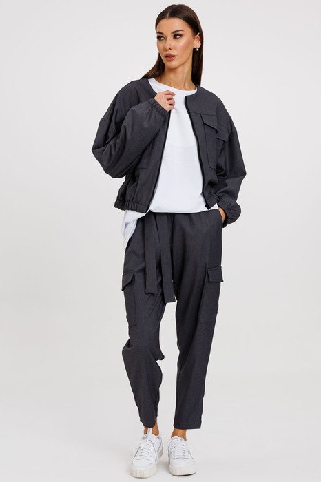 Этот костюм состоит из кардигана свободного силуэта и укороченных брюк, создавая идеальный ансамбль для любого случая. Кардиган оснащен удобными накладными карманами, резинкой по низу и застежкой-молнией, что обеспечивает комфорт и стиль. Укороченные брюки с боковыми накладными карманами добавляют современный акцент и практичность. Этот костюм идеально подходит как для деловых встреч, так и для повседневных выходов, подчеркивая вашу элегантность и уверенность. Ткань - классическая костюмная.