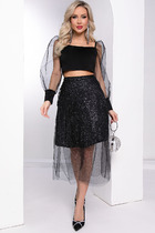 Юбка: Длинная модель с глубокими встречными складками визуально вытягивает силуэт, добавляя образу женственности и динамики. Боковые карманы в швах сохраняют практичность, а потайная молния на спинке обеспечивает аккуратную посадку без нарушения чистоты линий.