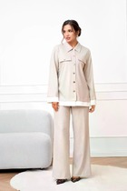 Брюки палаццо с высокой посадкой и скрытыми карманами продолжают философию комфорта и эстетики. Их струящийся силуэт визуально вытягивает линию ног, даря ощущение невесомости и легкости.
