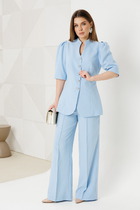 Костюм состоит из майки и шорт. Майка декорирована кокетками на плечах и треугольными вставками в боковых швах полочки. Шорты с прорезными карманамиТкань: кулирка