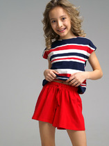 Костюм из кулирки футболка + шорты. Футболка с капюшоном, дизайн в полоску, узор в виде бантиков, отделка рукавов. Короткие шорты с аналогичным дизайном, пояс на резинке. Размеры от 26 до 36. Имеется возможность заказать данный товар по розничной цене.
