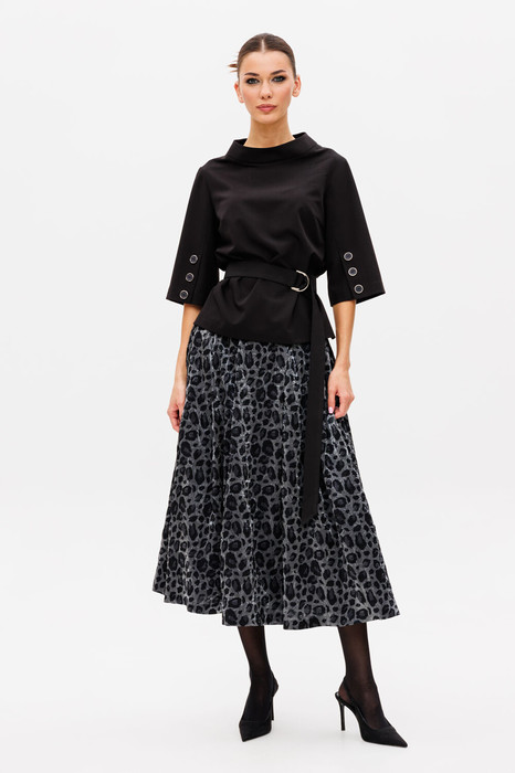 Состав: Блуза- Вискоза-20%; ПЭ-75%; Спандекс-5%; Юбка- Вискоза-19%; ПЭ-77%; Спандекс-4%;