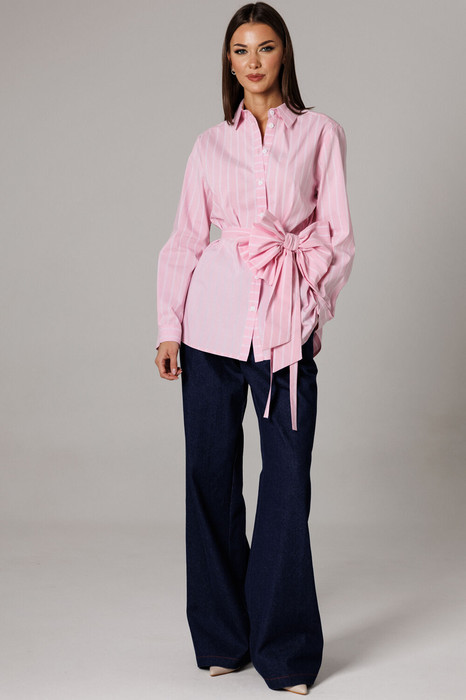В комплекте присутствуют съемные текстильные дополнения: пояс и декоративная брошь в виде банта.