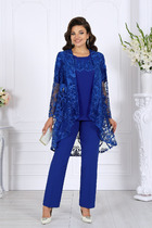 Комплект состоящий из жилета и укороченных брюк (кюлоты) Жилет на подкладке, прямого силуэта с увеличенной плечевой накладкой.  Застежка двубортная на 2 петли и пуговицы. В комплект входит мягкий пояс из основной ткани. Брюки прямого покроя на  прямом поясе с резинкой по спинке. Застежка на тесьму-молнию и пуговицу. По передним половинкам брюк функциональные карманы.