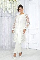 Комплект женский состоящий из жакета, юбки и трикотажного топа. Жакет на подкладке, приталенного силуэта, втачного покроя. По переду фигурные рельефы в виде встречных защипов. Спинка со средним швом и вертикальными рельефами из проймы. Вырез горловины фигурный. Застежка центральная бортовая на 3 обтяжные пуговицы и петли. Рукав двухшовный длиной ниже линии локтя с манжетой по низу, шов манжеты рукава оформлен встречными защипами.