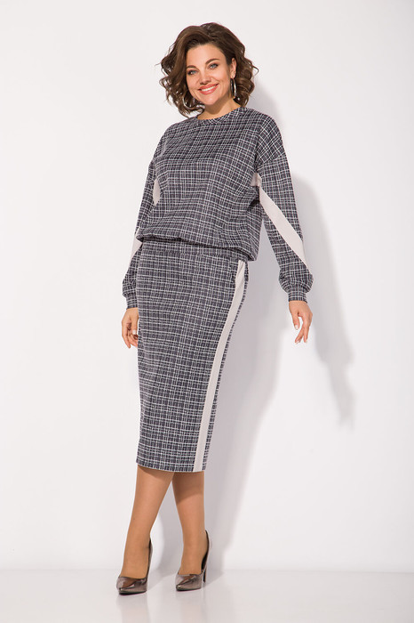 Неповторимый стиль и удивительный комфорт умело сочетаются в этом женском трикотажном костюме с юбкой. Приталенный силуэт юбки с высокой посадкой, а также свободный крой свитшота сделает образ лаконичным, поможет всегда оставаться в тренде. Продольные лампасы по рукаву и юбке из однотонной ткани зрительно стройнят и вытягивают силуэт. Юбка на питачном поясе с круговой резинкой имеет боковые карманы. Сзади предусмотрен разрез по среднему полотнищу юбки. Юбка на тикотажной подкладке, что создает дополнительный комфорт в носке!