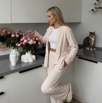 В комплекте брюки свободного кроя со средней посадкой на притачном поясе с круговой резинкой, обеспечивают свободу движений и подчеркивают актуальный брючный тренд - по низу брюк.