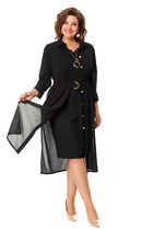 Жакет со стояче-отложным воротником пиджачного типа, спущенной линией плеча и двубортной застёжкой на петли и пуговицы. Перед с карманами с листочками в нижней части. Спинка со средним швом. На уровне талии съёмный пояс.