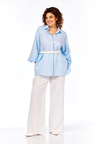 Юбка на поясе с резинкой. Переднее полотнище с разрезом в нижней части и настрочной декоративной тесьмой. Заднее полотнище с потайной молнией в среднем шве. Юбка на подкладке.