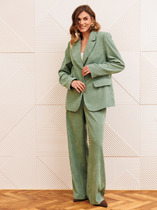 Комплект 2ка, состоящий из жакета и брюк. Жакет на подкладке с объёмными рукавами. Перед выполнен на запах с застежкой на кнопки, под пояс по талии. Широкие брюки-кюлоты свободного оригинального кроя с застёжкой на пуговицы. Без карманов.