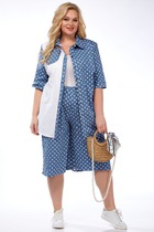 Костюм 2ка, состоящий из рубашки и брюк. Рубашка на пуговицах объёмного силуэта. Рукава дополнены шлейкой с застёжкой на пуговицу для сборки. Брюки широкого объема, прямого силуэта.