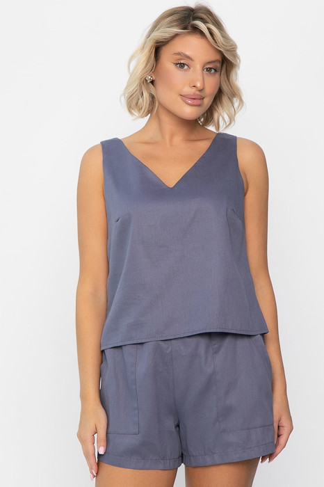 Домашний костюм с шортами и топом — идеальный выбор для комфортного досуга. Изготовленный из 100% хлопка, он приятно прилегает к телу, обеспечивая мягкость и воздухопроницаемость. Этот минималистичный комплект не имеет замков и пуговиц, что позволяет легко и быстро переодеваться. Сделайте свою жизнь уютнее с нашим домашним женским костюмом!