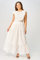 Элегантный костюм, состоящий из брюк с высокой посадкой на резинке и блузы свободного кроя. Очень женственный комплект украшают рукава с кружевом. Отлично подойдет на любое торжественное мероприятие!