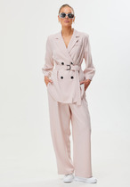 Стильный яркий комплект из блузы и свободных брюк. Выполнен из нежного комфортного штапеля . Блуза свободного кроя. Чуть ниже талии дополнена кулиской с тесьмой.  Брюки свободного  прямого кроя с притачным поясом, дополненным эластичной тесьмой. По бокам расположены  удобные карманы.  Длина блузы от плечевого шва 68см. Длина брюк по боковому шву 106см.