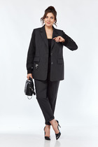 Комплект состоит из туники и юбки. Туника трикотажная прямого силуэта со спущенной линией плеча. По левой части переда декоративная печать. Рукав одношовный укороченный с манжетой по низу. Длина туники см, длина рукава см.Юбка, слегка зауженная к низу, по переду накладные карманы и декоративная отделка с пуговицами. Юбка на подкладке, по верху притачной пояс с резинками по бокам. Застежка в среднем шве заднего полотнища на потайную -молнию с петлей и пуговицей.