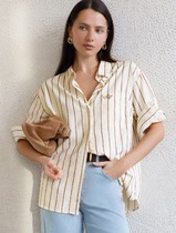 Блузка в полоску свободного силуэта с карманом из эластичного хлопка