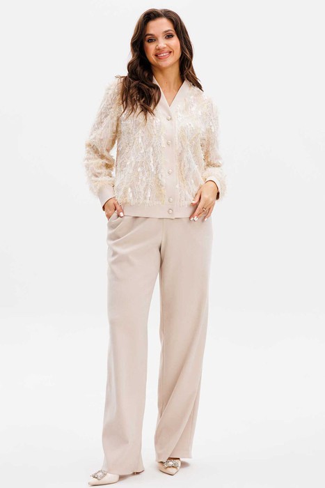 Костюм MisLana 1154 бежевый текстиль+пайетки