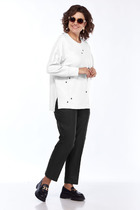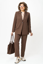 Костюм женский, состоящий из жакета на трикотажной подкладки и брюк палаццо. Жакет с притачной планкой по борту, с центральной застежкой на петли-пуговицы. Плечо спущенное, рукав втачной, с манжетой. Полочки и рукава из отделочной ткани. Брюки палаццо, на притачном поясе с резинкой и тесьмой. У брюк - боковые карманы.