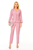 Стилисты бренда Мода-Юрс собрали для Вас комфортный лук, который состоит из жакета с цельнокройным рукавом и брюк "палаццо". Жакет полуприлегающего силуэта с кулиской, что позволит Вам подчеркнуть линию талии. Линия плеча спущена, низ рукава с притачной манжетой и патой, которая застегивается на петлю и пуговицу. Спинка со средним швом. Воротник пиджачного типа. Застежка центральная, на петли-пуговицы. Брюки на притачном поясе с резинкой. Застежка на тесьму-молнию.