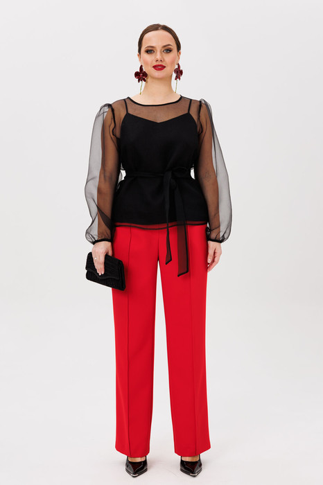 Нарядный женский комплект, состоящий из блузы, топа и брюк.