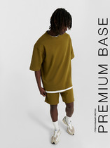 Костюм мужской из трикотажного полотна "кулирка" в комбинации двух видов: гладкокрашенного и с рисунком в крупную клетку, сочетающихся между собой по цвету, состоящий из джемпера и брюк. Джемпер - из гладкокрашеного полотна, свободного покроя, с длинными втачными рукавами и приспущенными плечами, с горловиной овальной формы и тематическим принтом, выполненным в технике шелкографии. Горловина, нижние срезы рукавов и низ изделия обработаны подгибкой с отделочным широким кантом контрастного цвета. Брюки - из полотна в клетку, свободного покроя, прямые, на притачном поясе с эластичной тесьмой внутри, с карманами в боковых швах. Нижние срезы обработаны подгибкой.