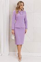 Жакет прямого силуэта, выполнен из ткани «лен-вишер». Модель без подкладки, с плечевыми накладками и однобортной внешней застежкой с отрезными планками на 7 петель и 7 пуговиц. Перед с нагрудными вытачками, выходящими из пройм. В нижней части переда настрочены накладные карманы с бантовой складкой посередине кармана и клапаны, застегивающиеся на 1 петлю и 1 пуговицу. По спинке и частично по переду настрочена кулиса, в которую втянут поясок из основной ткани. Для регулировки сборки по кулисе предусмотрены фиксаторы, концы пояса оформлены наконечниками. Горловина округлой формы со стояче-отложным воротником на отрезной стойке. Рукав втачной, длинный, с притачной манжетой, застегивающейся на 1 петлю и 1 пуговицу; по середине рукава настрочена пата, застегивающаяся на 1 петлю и 1 пуговицу, что позволяет регулировать длину рукава. Длина жакета - 71 см (46-50 р-р), 72 см (52-60 р-р), 73 см (62-66 р-р). Длина рукава (с манжетой) - 61 см.