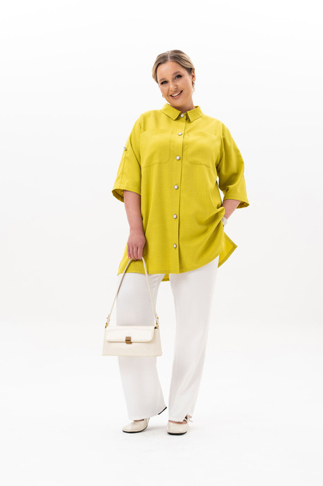 Женский брючный костюм - это всегда стильно! Элегантный дизайн костюма подарит комфорт и уверенность в себе. Летний брючный костюм в стиле сафари из костюмной ткани лен-твил. Жакет рубашечного кроя, свободного силуэта с кокеткой и встречной складкой по спинке, на полочках имеются 2 накладных кармана, воротник отложной, рукав втачной с патой длиной до локтя. В боковых швах есть разрезы. Брюки прямые, свободного кроя, высокой посадки, пояс на резинке. В боковых швах брюк есть карманы-хулиганы . Этот модный костюм-двойка больших размеров отлично подойдет на весну и лето для офиса, праздника, на каждый день, для вечеринки, для прогулок, для отдыха, для работы, для высоких и невысоких девушек и женщин, а также будущих мам. Костюм также поможет создать стильный и незабываемый  нарядный образ, став любимой вещью в гардеробе!
