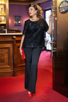 Элегантный женский костюм из ткани «марчано» стильный и универсальный наряд для различных мероприятий. Модель "двойка" сочетает в себе современные тенденции 2025-26 года с классическими акцентами. Подходит как для офиса, так и для особых случаев ( новый год, корпоративы, свадьбы или дни рождения) обеспечивая комфорт и уверенность в себе. Брюки с широкими штанинами палаццо выгодно подчеркивают женственные формы, а свободный крой обеспечивает удобство в любой ситуации. Этот костюм больших размеров идеально подойдет для прохладного времени года благодаря легкому материалу и возможности сохранить тепло. Текстура ткани добавляет изысканности и роскоши, делая образ особенно привлекательным на особых событиях. Благодаря универсальному дизайну, костюм можно успешно сочетать с различными элементами гардероба, создавая разнообразные стили от официального до повседневного. На брюках обработаны карманы в боковых швах, по талии пояс с застежкой на молнию и частично на резинке. Жакет с отрезной баской и воротником стойкой переходящей в борта. Застежка на потайную петлю и пуговицу и на завязки. Рукав длинный, втачной на манжете. По окату рукава обработаны складки. Доступен в различных размерах, в том числе и для женщин пышных форм, этот костюм позволит каждой леди подобрать идеальный вариант. Красный цвет костюма подчеркнут вашу индивидуальность и хороший вкус. Независимо от того, выберите ли вы его для офиса или вечера, этот костюм станет верным спутником в создании вашего стильного образа.